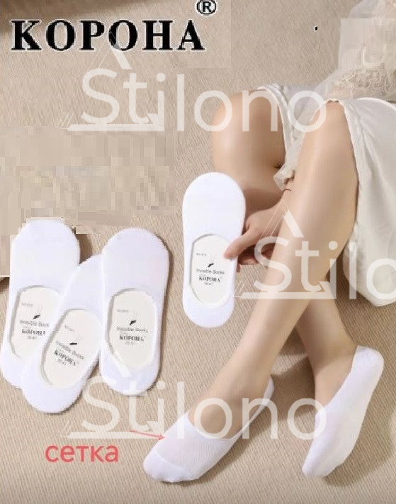 Белые женские следки с сетку (силиконовый задник)